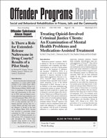 Offender Programs Report Nothing could be further from the truth. Every day, treatment programs around the country are proving that offender rehabilitation does work. Hundreds of treatment and educational programs are achieving impressive results with substance abusers, violent offenders, juveniles and, sex offenders. As more offenders are released back into the community, we need programs that work more than ever. For twenty-one years, from 1997 to 2017, Offender Progams Report profiled offender programs that work—helping program administrators and treatment professionals document and build support for their successes, through program evaluation, networking and family assistance programs, and community and legislative outreach. The report's best work since 1999 is now preserved in this online archive, accessible either on a pay-per-article basis or through an annual subscription. Drawing on leading authorities in counseling, corrections, mental health, addiction treatment, and the law, Offender Programs Report brings together innovative ideas and therapies for offender rehabilitation and treatment in both community and institutional settings. OPR profiles successful programs for substance abusers, sex offenders, mentally ill and developmentally disabled offenders, as well as a variety of other special offender populations—and offers practical assistance in implementing new programs and strengthening existing ones. Written by professionals for professionals, OPR is an essential resource for therapists and counselors, administrators and attorneys, probation and corrections professionals, researchers and educators. Articles are available on a pay-per-download basis or an annual subscription. An annual subscription includes access to Offender Programs Report online and Offender Substance Abuse Report online archive, eight years of best-practices in substance use treatment programming. *Institutional and Individual Subscriptions to the Online Archive. Library/Institutional Subscriptions include access for multiple users from a single facility using IP Address Authentication—users can open, read, and print material without having to enter an ID or password. Individual Subscriptions are for a single user—material is accessed using log-in credentials assigned when you begin a subscription. Related Publications:
