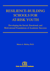 Resilience-Building Schools for At-Risk Youth: Academic and social-emotional competencies are essential to the lifetime success of our children. How can schools that serve at-risk students build the social, emotional, and motivational foundations of academic success? This important new book is designed to provide educators and school leaders with an authoritative yet easy-to-follow blueprint for creating “Resilience-Based Schools”—nurturing environments that fully address the goals of academic learning while also developing the social, emotional, and motivational foundations that are essential for learning to happen. Drawing on current research and from her own direct experience with kids who have thrived in these settings, Dr. Maura Mulloy provides a practical framework that gets everyone pulling together in the same direction to promote positive student adjustment and high-achievement learning outcomes. In this book, she:
