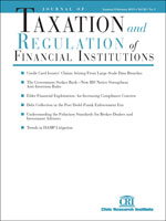 Journal of Taxation and Regulation of Financial Institutions Published quarterly in print and online for thirty-one years, Journal of Taxation and Regulation of Financial Institutions has brought together the field's foremost experts to analyze complex financial-markets and transactions. It concluded publication of new material at the end of 2018. The journal's best work since 2003 is now preserved in this online archive, accessible either on a pay-per-article basis or through an annual subscription.
